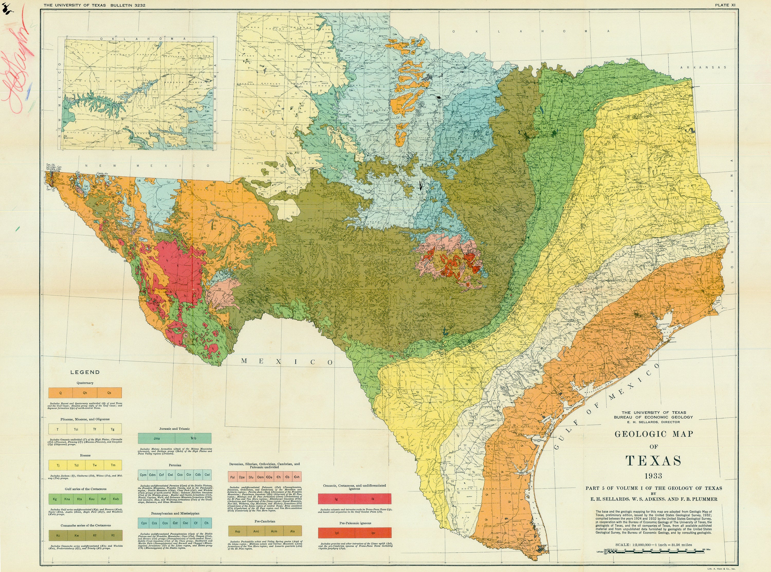 Geologic Map of Texas: Sellards 1933 โ The Antiquarium Antique