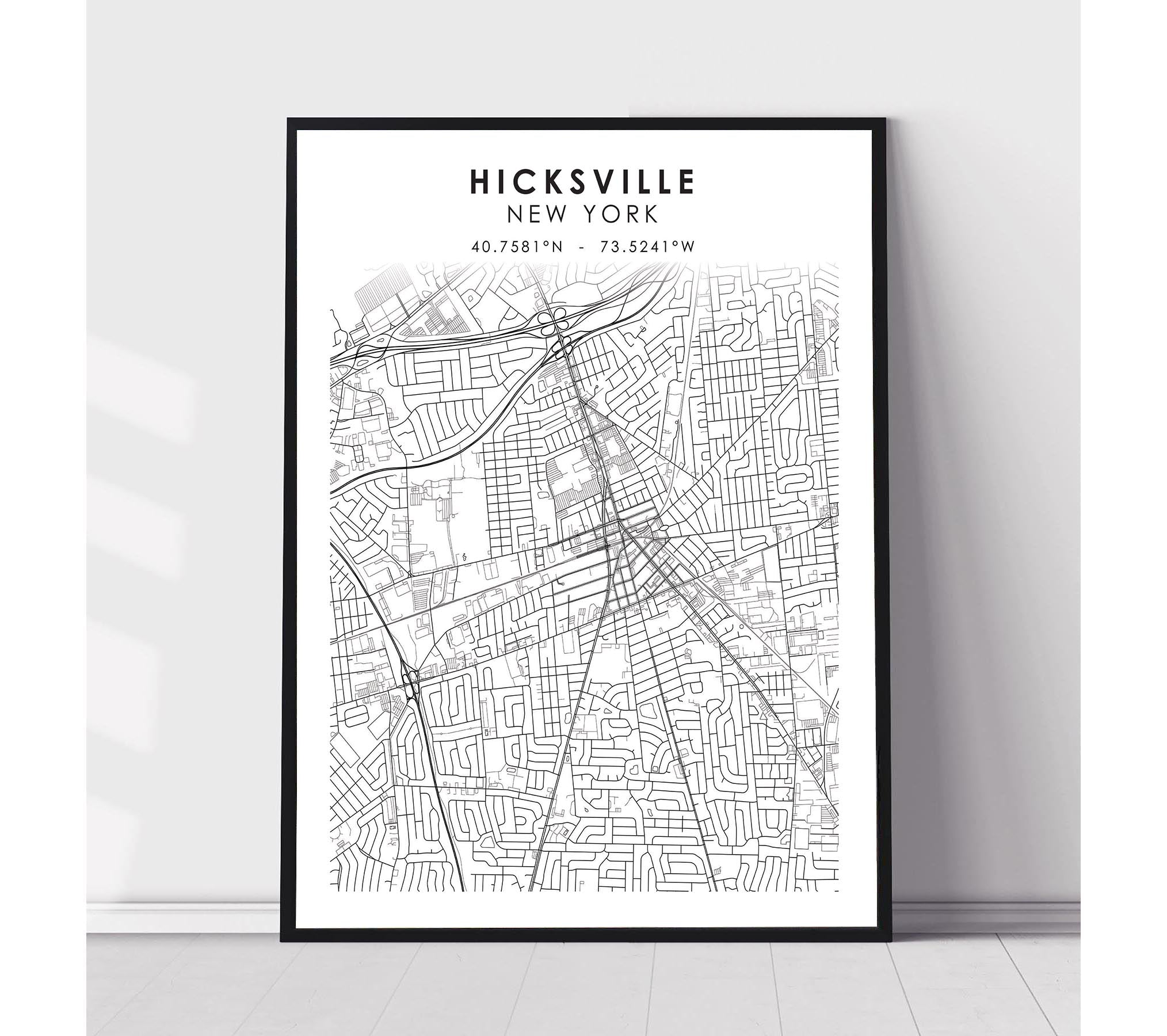 Hicksville, New York Scandinavian City Map Print | City Streets