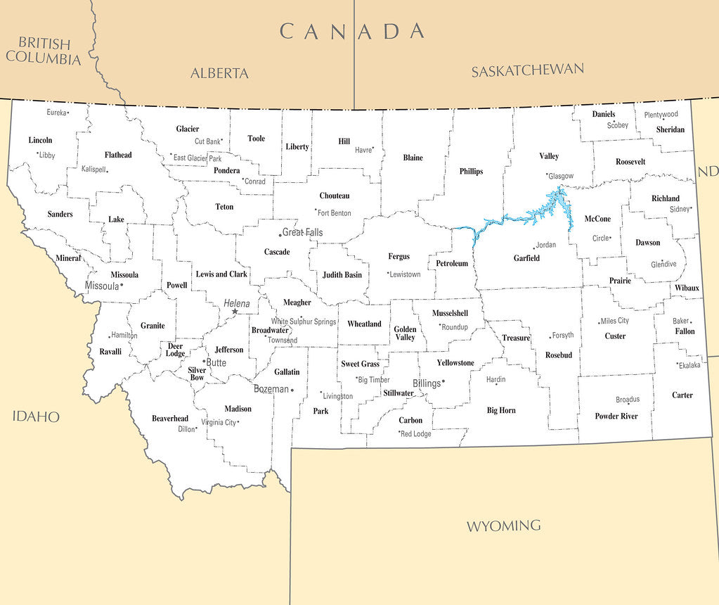 Map of Montana MT County Map with selected Cities and Towns