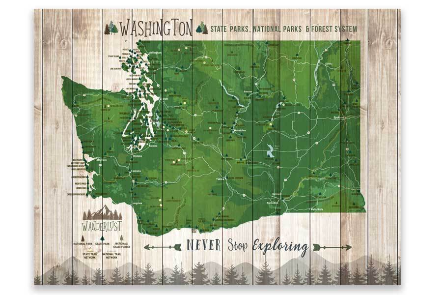 Washington State Park Map, Wall Art of WA State โ World Vibe Studio
