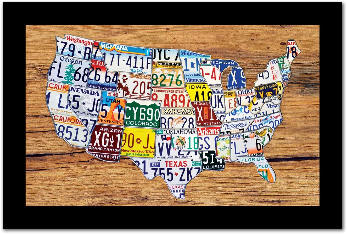 Framed License Plate Map of United States 19″x29″ Ready to Hang