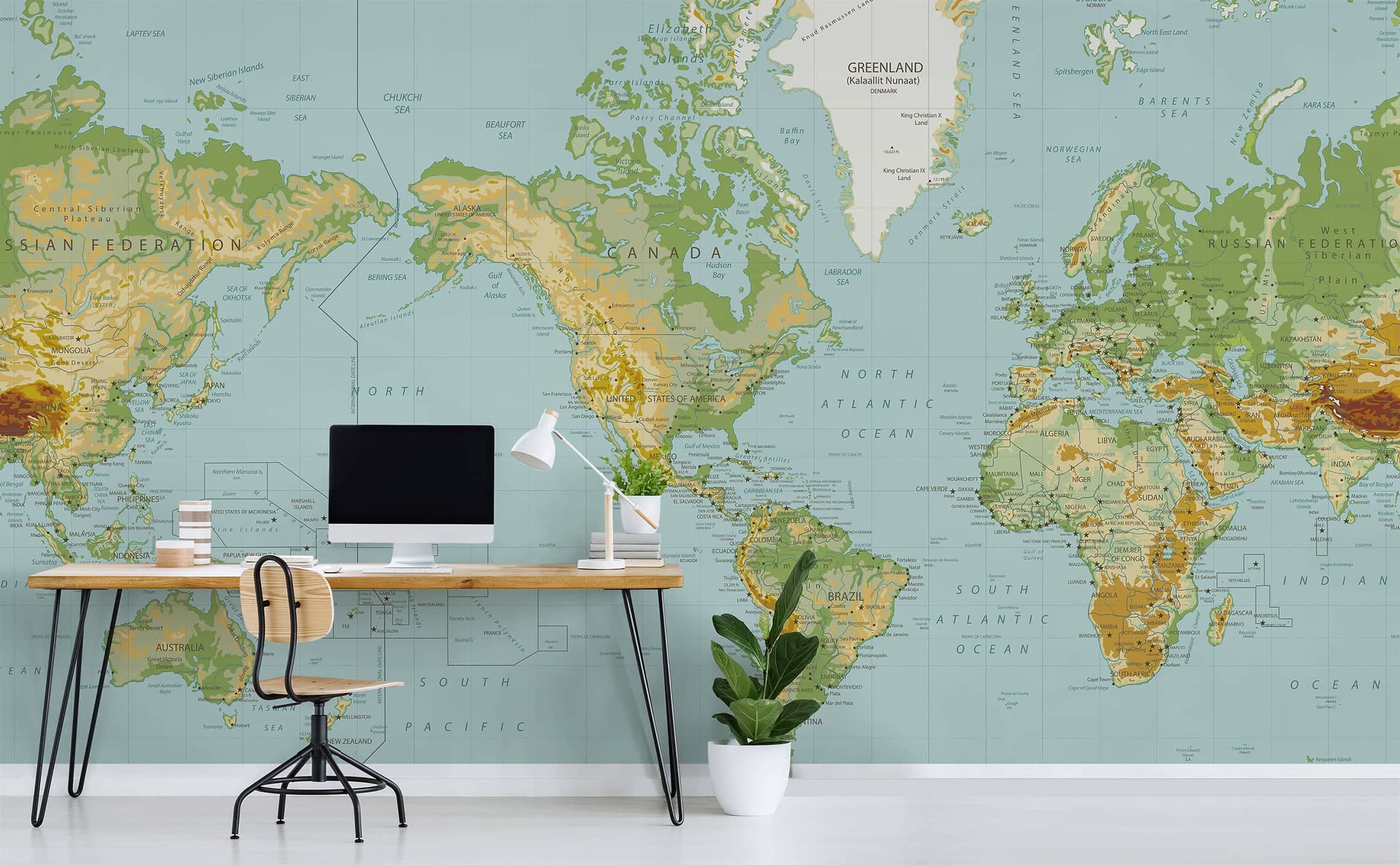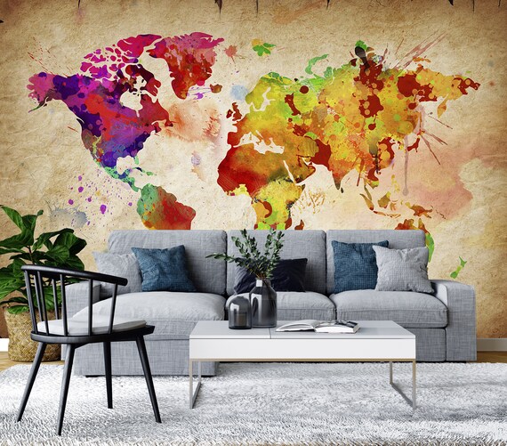 Wall Sized World Map Wallpaper Political Peel and Stick Self Etsy