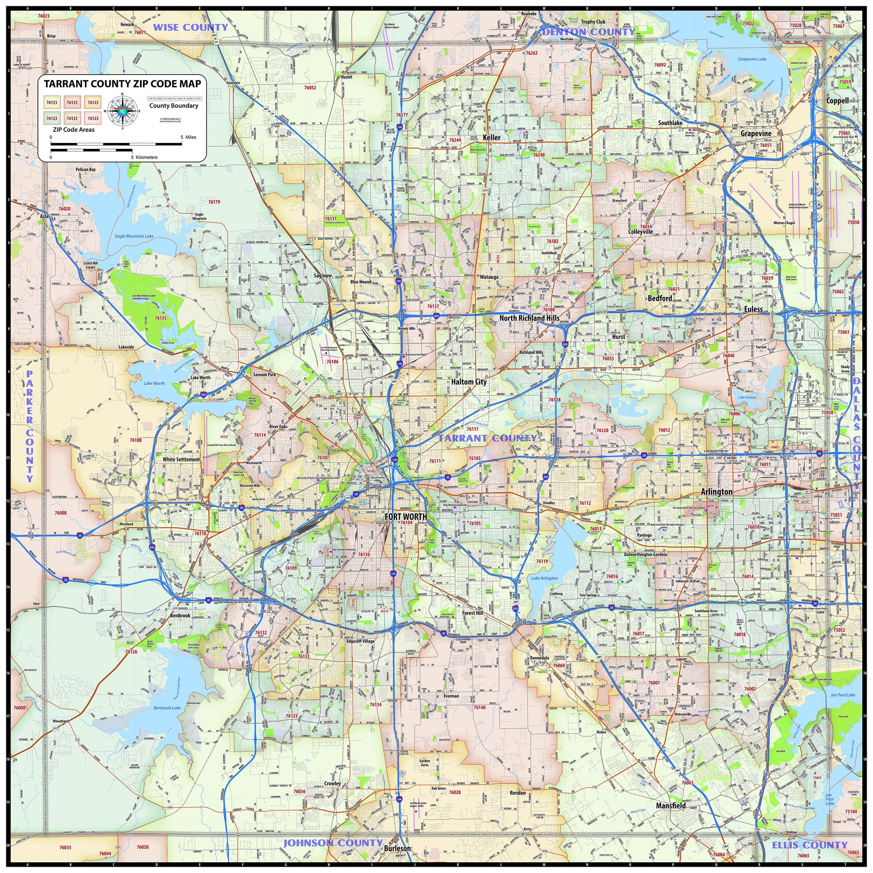 Tarrant County, Texas Zip Codes by Map Sherpa The Map Shop
